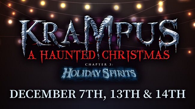 Krampus: A Haunted Christmas – Chapter 3: Holiday Spirits open dates include December 13th and 14th. Doors open 7 p.m. to 11 p.m. on Friday and 6 p.m. to 11 p.m. on Saturday. Tickets are available for purchase online:. $24.99 General Admission; $34.99 Fast Pass (limited wait); and $$44.99 Skip the Line (no wait).