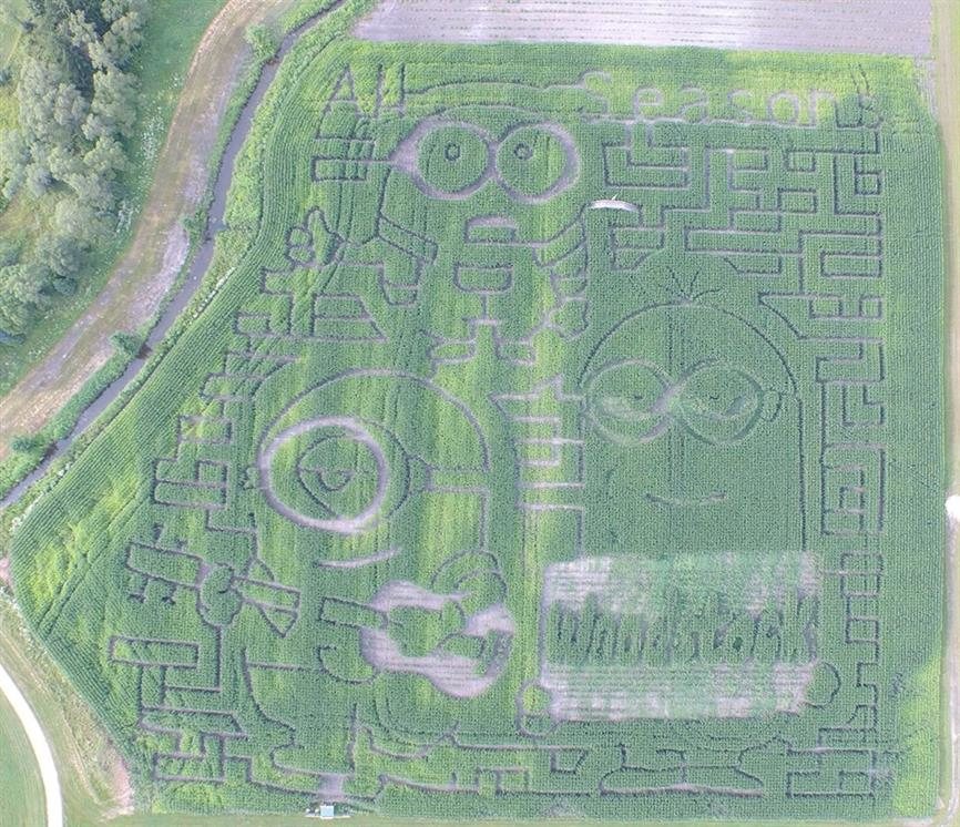 Each year over 10 acres at All Seasons is transformed into a corn maze with over 3 miles of pathways and a lookout bridge. The corn maze has 2 paths: a shorter one for youngsters, and a more challenging one for the maze enthusiast. Admission to the corn maze is included in the Barnyard Admission.