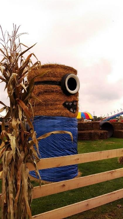 The tractor drawn hayride travels down the dirt farm roads through the corn fields where the friendly scarecrows stand guard over the rows and rows of mile high cornstalks.