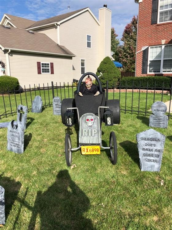 Greenbriar Cemetery is a home Haunt, with a full cemetery, ghosts, thunder lighting music and many other frights! We have a zombie coffin race car on display with special effects and lighting! weekends in October have live actors with scary props around every corner!