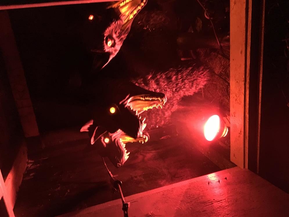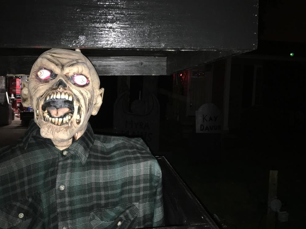 Graveyard with animatronics, with many different pop out characters. This show is very animated with many different surprises that come alive when you pass motion sensors.